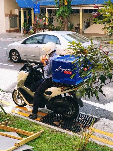 (新加坡23日讯)近来饱受指责的新加坡邮政引来形象“转机”,有网友前天上载邮差在摩哆上吃面包的照片到社交媒体,引来许多网民同情和热议,纷纷留言体恤邮差的工作艰辛。