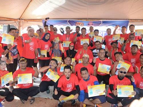 阿米鲁丁(坐者中)颁发参赛状,给布拉善园欢乐骑脚踏车的参赛者。