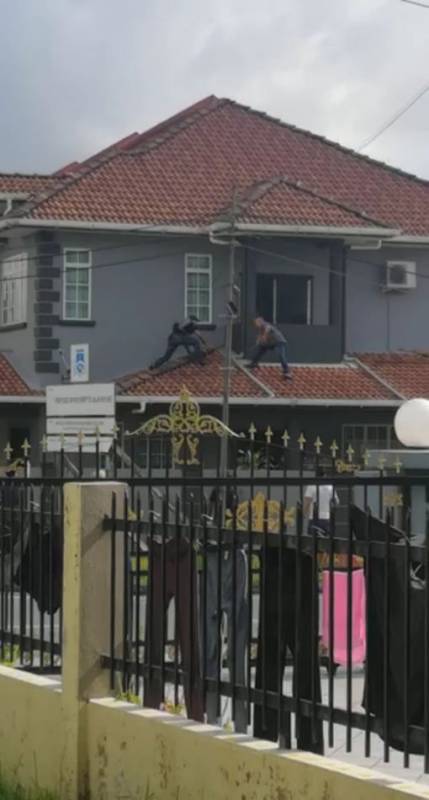 毛贼的男子在屋顶上持着木棍,同持着木棍的公众男子要对打,但在底下公众的吆喝下,毛贼显得心虚逃走,场面惊险万分,最终毛贼一个不稳,从屋顶坠下负伤被公众联手教训。