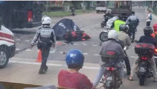 警方赶到现场后,当场宣告摩托车骑士死亡。当时宏茂桥1道的两条车道被封锁,死者也被盖上了蓝色帐篷。