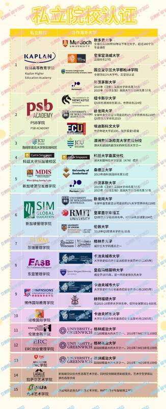 以上新加坡私立院校与国外大学合作的课程都是能被认证的,可放心大胆的就读。而且里面的国外大学几乎都是海外top500以内的高校,有些排名还是很靠前的,这点对于落户,是不是更有好处了?