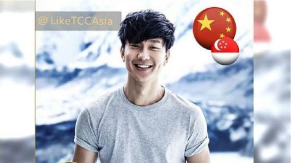林俊杰的照片同时加上新加坡和中国国旗,令网民大感不解。 (互联网)