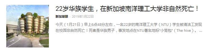 前天(2月21日),一名23岁的南洋理工大学学生,被发现在大学宿舍内死亡。