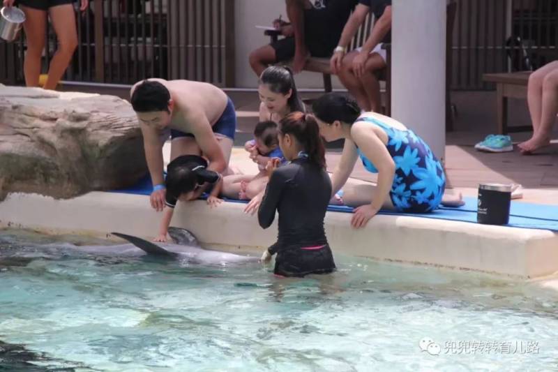 除了这个,最引人注目的应该就是可以和各类海洋动物互动。例如可以在海豚园(需单独买票,等于是水上乐园一张,海豚园一张。)110CM以上可以参加海豚伴游,经过讲解和培训 可爱的海豚会顶着你的脚在水中“享受”一对一“礼遇。当然需要会游泳。不满110CM可以参加海豚探索,在浅水区域听饲养员讲解海豚的习性和海洋知识,与海豚互动。