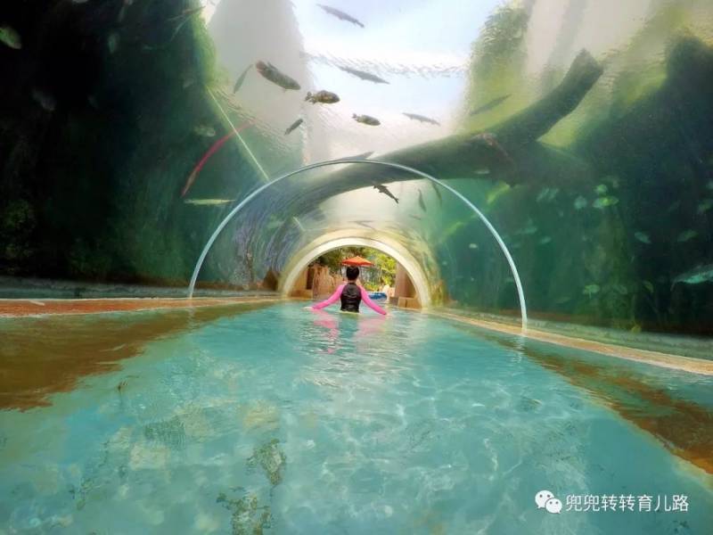 早上可以先去水上探险乐园,里面除了各种水上滑梯外,还有一条很长的漂流河(因为这条漂流河,我们差点错过摸海豚的时间),因为水上探险乐园和水族馆挨着,漂流河的后半段会经过一段海底隧道,从水下观看各种鱼从头顶游过去。(图片来自网络)