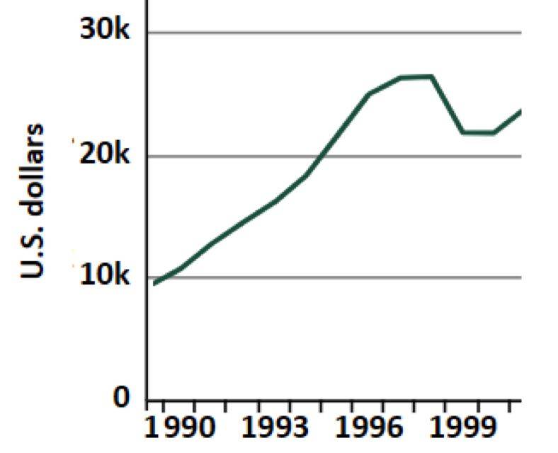 90年代新加坡人均GDP走势。