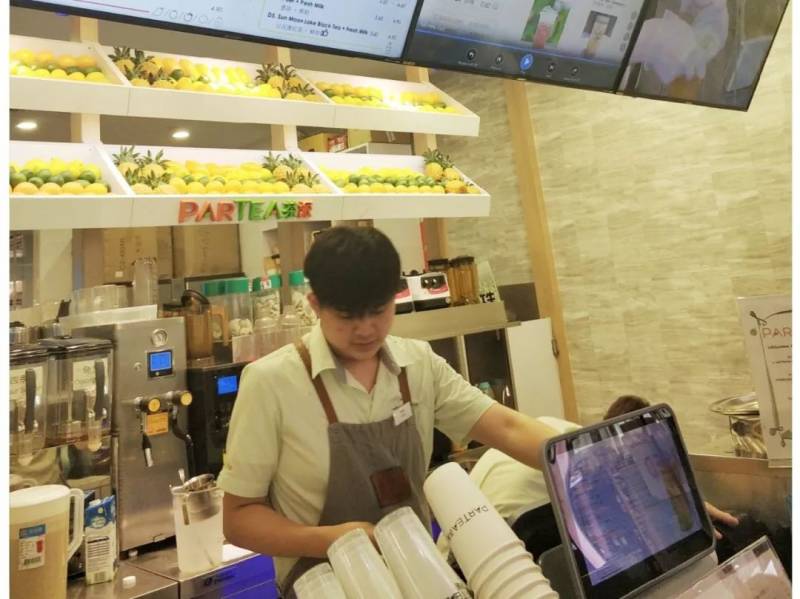 在商场买奶茶的时候,小哥哥一直撺掇我加一份珍珠:“我们的珍珠很好吃的,就加零点一个新币。珍珠都是我们自己做的哦!”看我微笑,他趁热打铁:“加吧,我们珍珠非常好吃,不好吃我不收你珍珠钱!”最后我还是加了珍珠,大吸一口,看了一眼他,他笑笑:“是不是很甜”。噢,你笑得比珍珠甜。