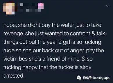 她说,小A当时并不是为了报复才买的饮料故意去泼小B的,她只是想好好把事情说清楚,无奈小B言行粗鲁,她忍无可忍才怒泼饮料回敬的。这位目击者也表示,持刀伤人的小B简直“疯狂”,被逮捕了也是好事。