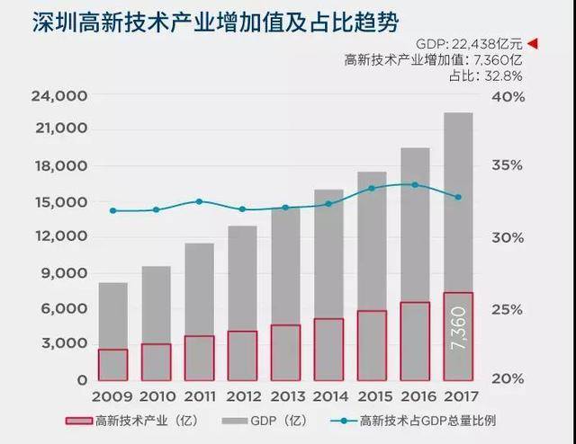经过转型,深圳已经从10年前的靠90%模仿和10%的创新,转变为如今70%的创新和30%的模仿,每万人拥有发明专利89件,创新型企业聚集,新经济、新技术态势很好。与此同时,深圳又恰逢一个赶超硅谷的重要时机——那就是硅谷的衰落。