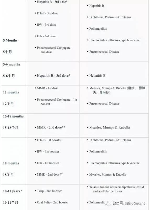 儿童需要接种的疫苗,在新加坡和中国是有不同的,小编给大家做了总结~!