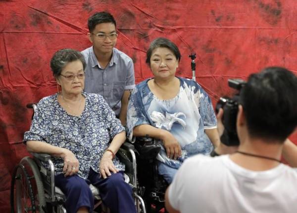 黄秀玉(55岁)和儿子王训人(16岁)和母亲辛柔莲(79岁)今天在全国肾脏基金会举行的家庭日拍全家福,同时也分享她一路来的故事。