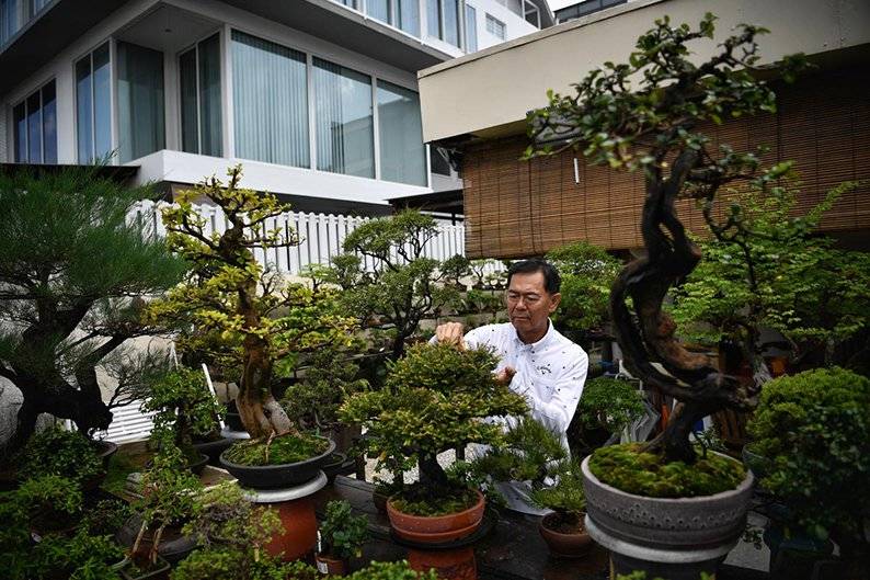 莫壮廷在洋房内种植了超过500盆盆景。(《海峡时报星期刊》)