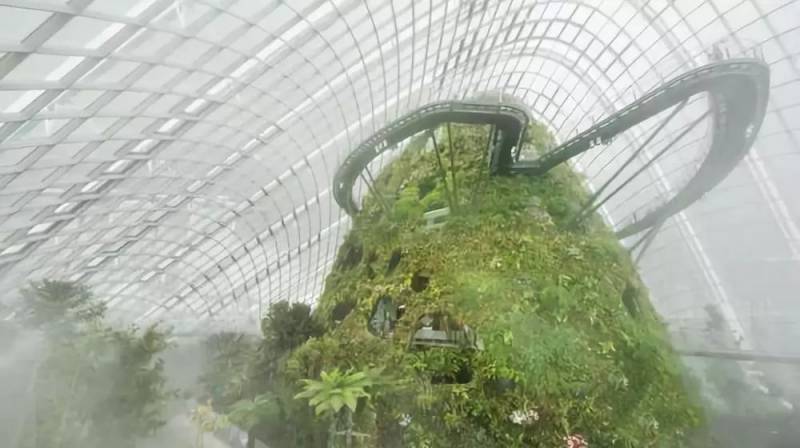 占地0.8公顷的云雾林,可容纳1200人,里头还有一座35米(约13层楼)高的山和一道30米(约11层楼)高的瀑布。不同于花穹,它模拟的是湿冷的生长环境。