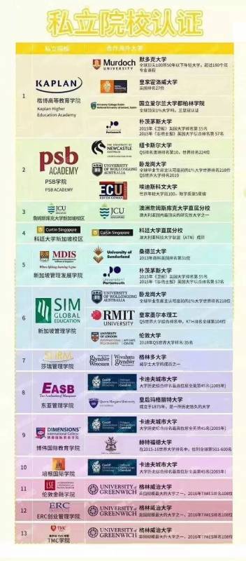 新加坡很多私立大学与海外世界名校合作开设课程,学生可以在新加坡选修课程,拿到海外大学文凭并且得到中国的认证。