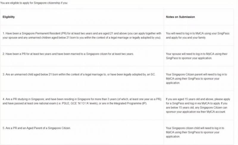 在提交申请时,申请人必须在新加坡居住两年以上;