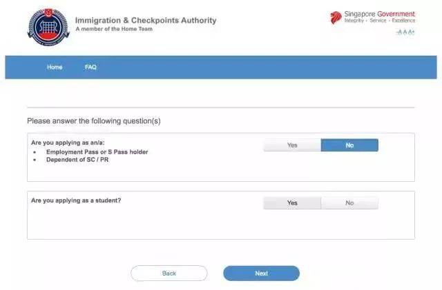 1. 选择“不是工作准证或者配偶”后,跳出“学生申请”选项。