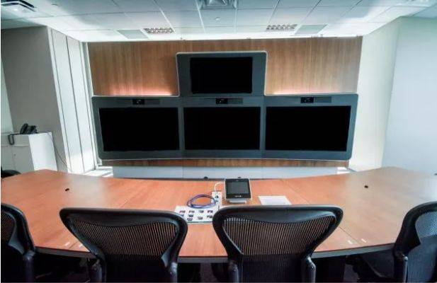 配有巨大的电子屏幕用于视频会议