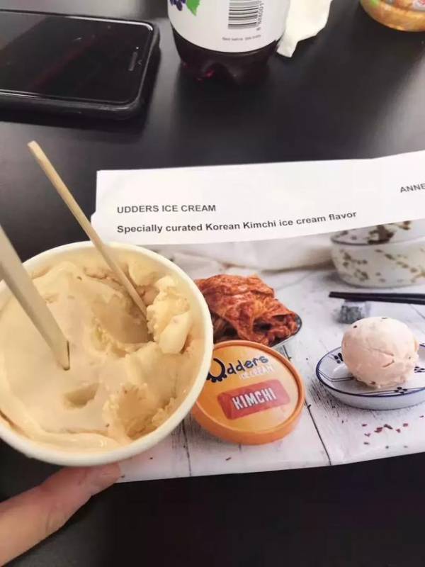 除此以外,当时参与报道的直新闻记者在媒体中心品尝到了泡菜味的冰淇淋,还用冰棍棒参加了现场发起的以”金特“发型为标志的喜好投票,趣味十足。