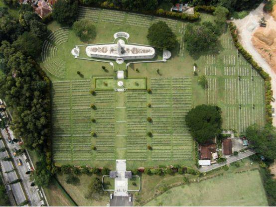 我特意寻找了克兰芝公墓的俯视图,这座纪念碑从高空看真的很像一架战斗机 (此图来自网络)