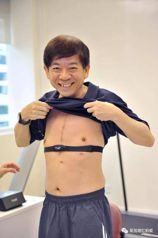 许文远部长动完心脏绕道手术后,在国家心脏中心进行复健,使用心跳测量表。(海峡时报)
