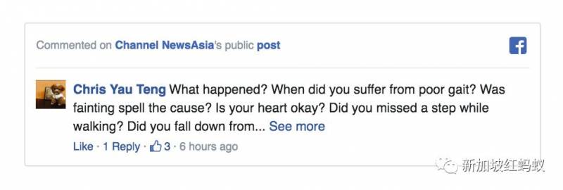 发生什么事?是不是走路姿势不对?还是晕眩?心脏没问题吧?走路踩空了一脚?还是从床上摔了下来?无论如何,应该有许多当医生的议员在探访你时能确保你的安康。祝你早日康复。希望政府不要将提取公积金的年龄延长得太久,人生无常啊。