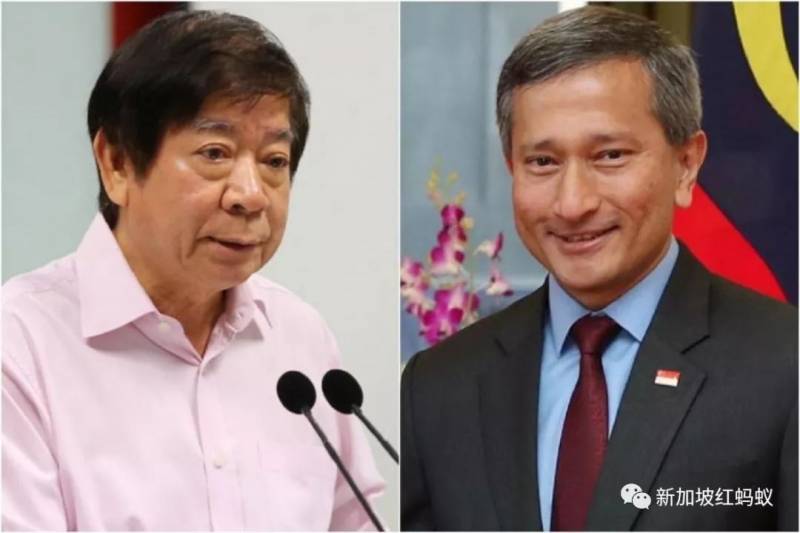 外交部长维文(右)将在基础建设统筹部长兼交通部长许文远休息期间出任交通部代部长。(海峡时报)