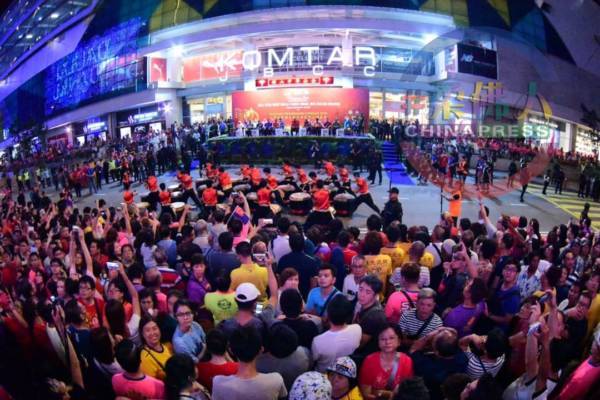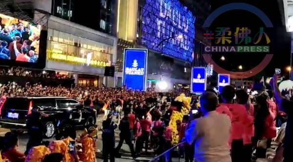 整个游神队伍越夜越精彩,将新山市中心街道挤得水泄不通。