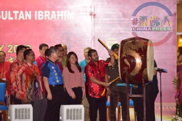 柔佛王储首度在古庙游神盛会,并以击鼓为游神盛典开幕!
