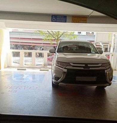 杨姓网民前天将照片上传到面子书群组中,指一辆休旅车在裕廊西巴刹停车场,疑为了等家人而占用了两个残疾人士专用停车位。