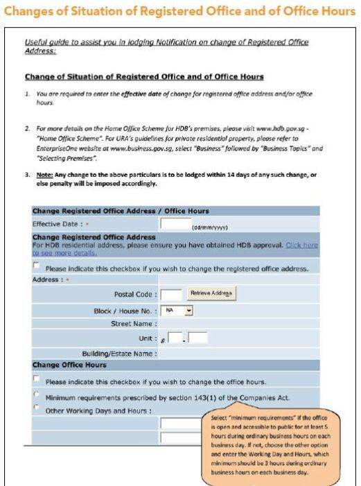 更换公司地址的ACRA页面如下:
