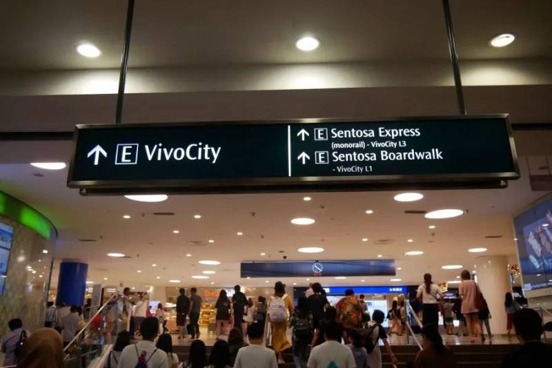 如果要搭轻轨进圣淘沙,可以从地铁港湾站(Harbourfront)走E出口直接到 Vivo City 怡丰城的南侧。但因为轻轨快捷跟RWS8的公交车搭乘处都位在北侧,比较推荐走C出口,C出口往前走可以看到计程车搭乘处,回转则可以看到RWS8乘车处,往怡丰城里面则可以看到往3楼的Lobby L指标。
