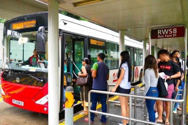 (3)搭乘地铁到港湾站下车,从A出口出来后找到巴士站14121搭乘公交车RWS8至圣淘沙名胜世界下车。