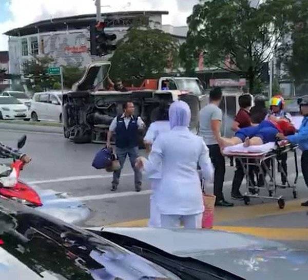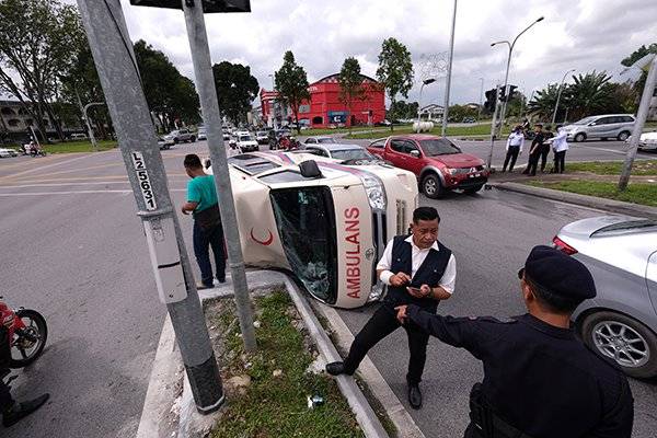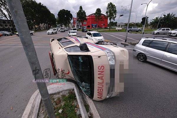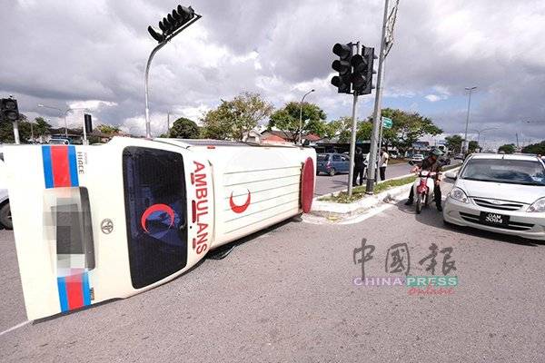 院方证实,当时载送孕妇的救护车已经快抵达医院,就在医院附近的交通灯处欲越过对面时,遭一辆车撞上翻覆。