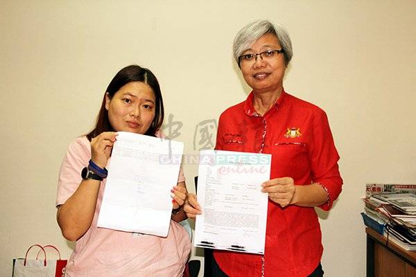 丘慧玲(左)通过颜碧贞州议员召开记者会,要求银行尽快完成调查,把盗提款项还回给她。