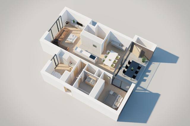 是一种两三层楼的联排(排屋)或半独立式别墅,但地契与项目内的其他别墅共同拥有。这类房屋种类的地契一般分99年、999年和永久,与普通公寓一样,也附带装修和游泳池等设施。