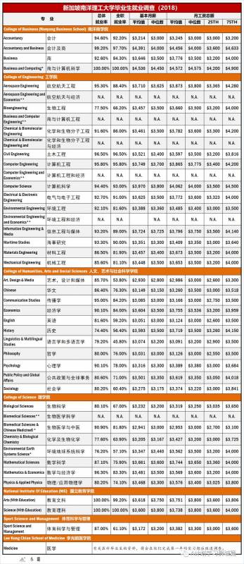 毕业生就业调查首次公布集合国大、南大、新大和新跃社科大学(SUSS)不同科系类别(course-cluster)的毕业生起薪数据显示,资讯与数字科技类专业的毕业生薪资最高,其全职固定工作起薪中位数达4100元;八个科系类别中,薪资最低的是艺术、设计与媒体类专业,为3000元,略高于2017年的2944元。