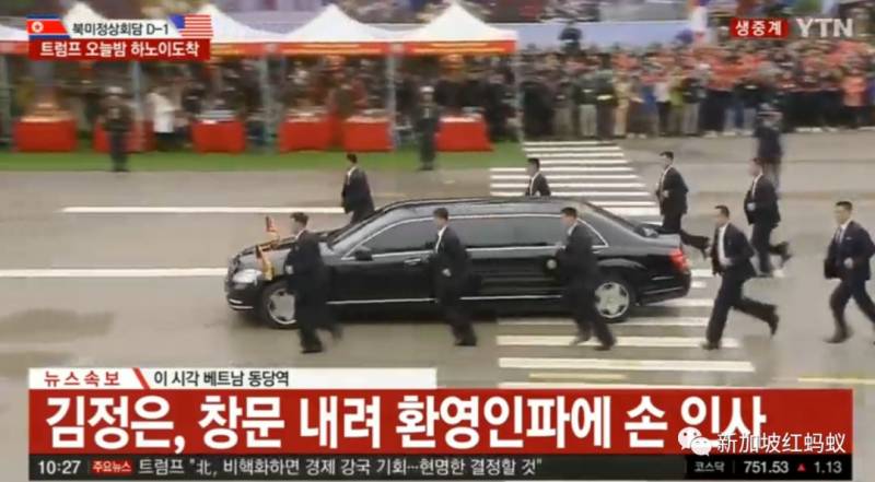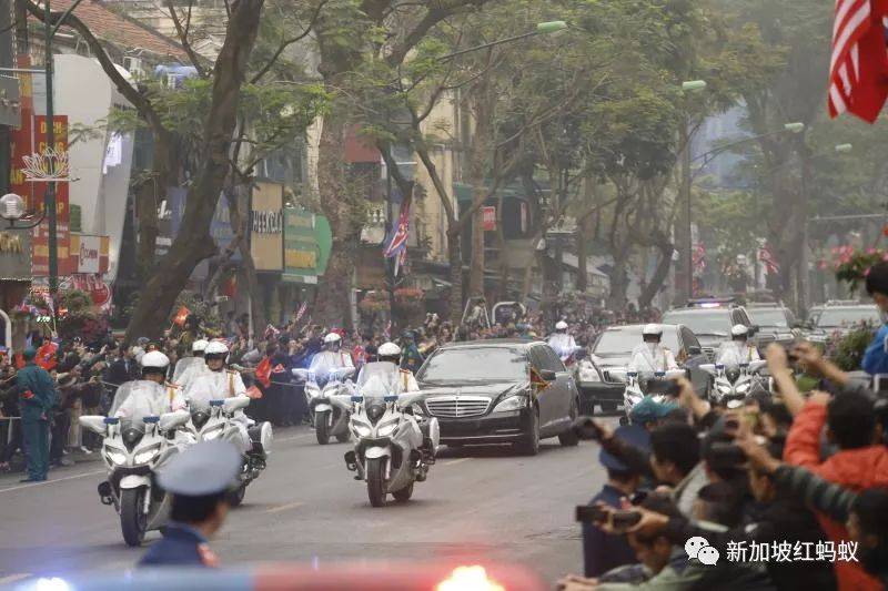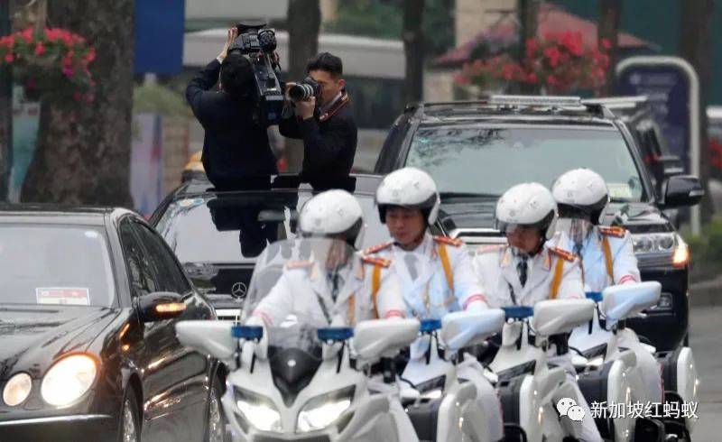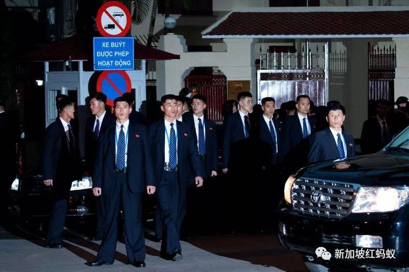 金正恩在当地时间早上8时15分左右抵达越南边境城市同登后,步出火车站,转乘奔驰轿车前往河内。下面这张十多名保镖在两旁奔跑护送的画面,是不是有点似曾相似的感觉?去年在新加坡也见过。