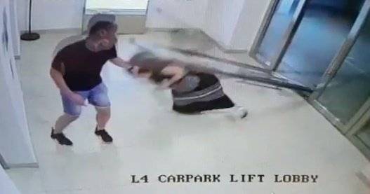 根据时长52秒的视频显示,首先可见一家四口步出电梯后,开门走向泊车场,紧接着一名身穿黑色Polo衫的男子从停车场开门走进电梯处,一名身穿黑衣长裙的女子也随后而至,突然一扇门轰然倒下,当场将刚走进电梯处的女子砸至倒地不起,但玻璃门并没有碎裂。