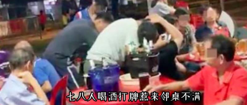 广告目击者拍摄下全部过程,当晚有不少人在吃饭喝酒,大多数都是小店常客,其中一桌七八人围绕的熟客看到旁边在打扑克牌,而上前劝说停止此行为。