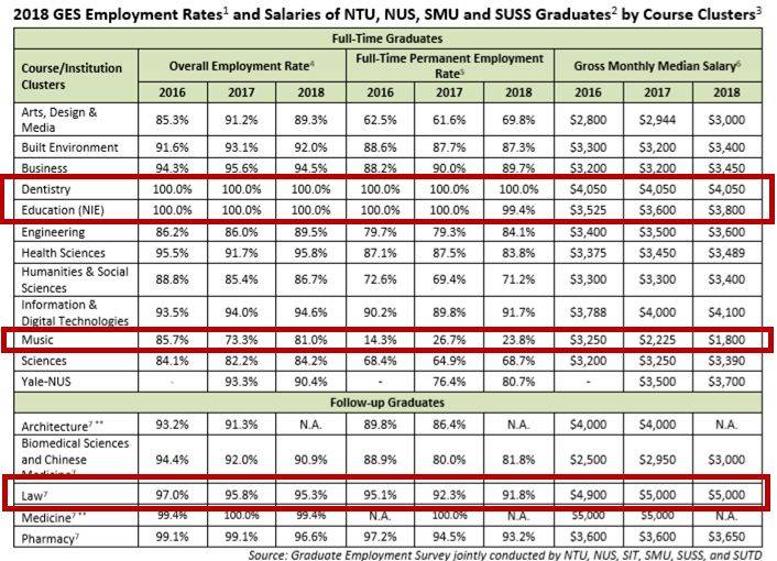 最“惨”的应该就是学音乐的了。培养的时候花了大钱买乐器、上辅导班,毕业后就业率只有23.8%,2016年更是低到了14.3%,薪水也只有1800新币,这......都说新加坡是艺术的沙漠,看这个形式,怕是要继续干涸下去了吧。