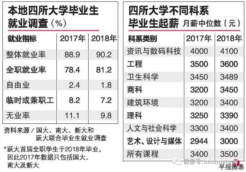 在就业薪资方面,全职就业的毕业生去年起薪中位数达3500元,比前年增加100元。
