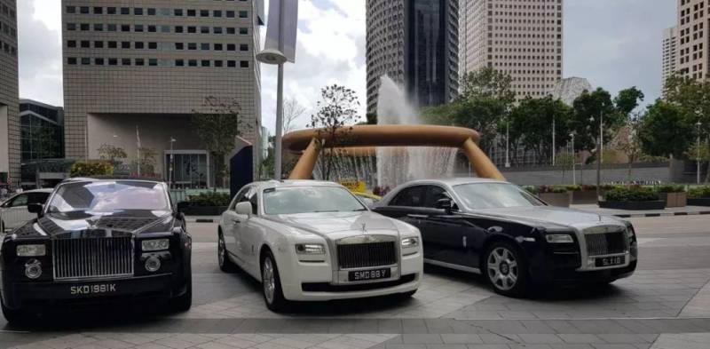 (2月26日),新加坡新达城(Suntec City)外超热闹,看这一排扎眼的豪车: