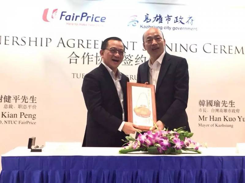 韩国瑜在和NTUC Fairprice签约仪式上,来源:韩国瑜的Facebook