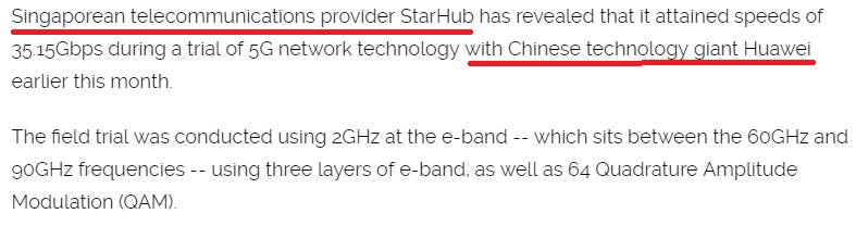而另一家电信业巨头Starhub,也在2017年和华为完成了5G网络技术的测试。