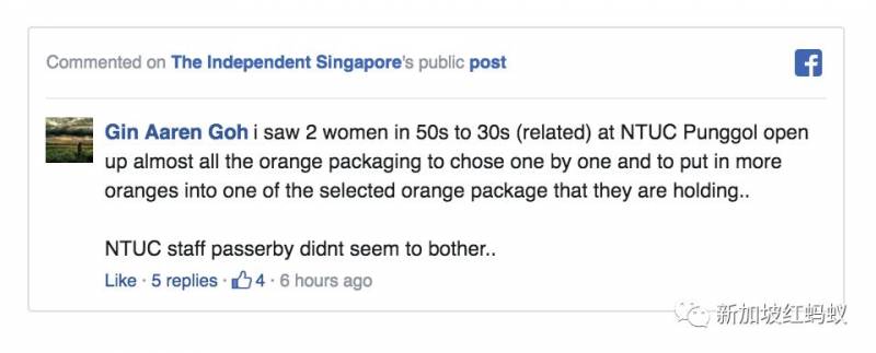 而这位就说,曾看过两名年龄介于30岁至50岁女子,而且两人是认识的,她们打开一袋橙子的包装,重新逐个挑选,而且还装多几个橙子进袋子里。(红蚂蚁瞬间觉得换鸡蛋的阿嫂是较善良的)