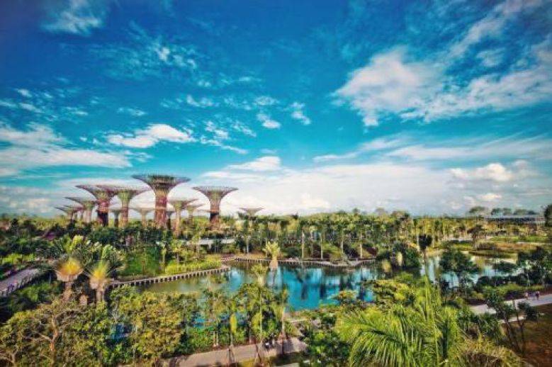 滨海花园由风格迥异的三个花园组成,南花园、东花园和中花园。这里利用先进的现代技术,将世界各地的植物汇集于此,若干25米到50米的参天大树架起的垂直公园,各类热带攀缘植物、附生植物等。