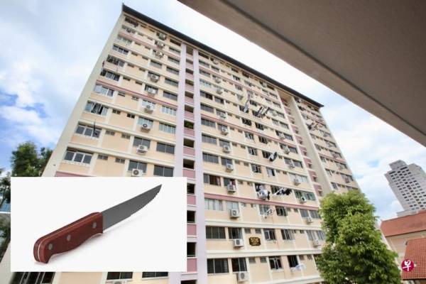 被告在父亲居住的组屋单位外刀袭父亲。(陈佩敏摄)