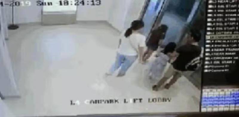 在这之后,又有一位男士从停车场走进来等电梯,这个时候一起还看上去那么自然!