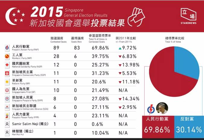 建国至今每次选举,人民行动党都以绝对优势赢得选举。