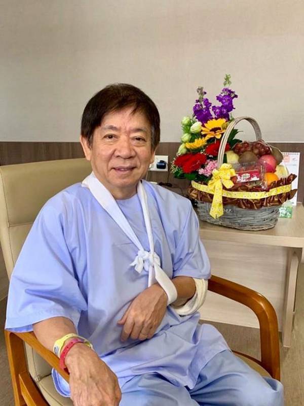 许文远在新加坡中央医院留医,精神看来不错。(取自面子书)